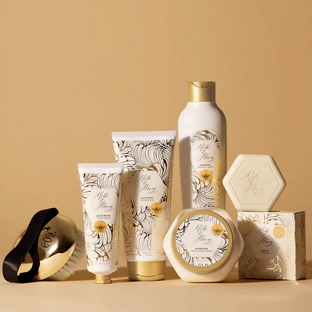 این کرم دست خوشبو و دلچسب با عصارههای ارگانیک شیر و عسل و گلیسیرین غنی شده است. فرمول غیر چرب آن به راحتی جذب میشود و پوست را خوشبو میکند و در تمام طول روز دستان را نرم، لطیف و مغذی نگه میدارد. رطوبترسانی ۲۴ ساعته شیر و عسل پوست را آبرسانی و تغذیه میکند . توسط متخصصان پوست آزمایش شده است